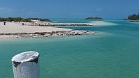 Op South Caicos kom je weer in het ware paradijs. De volgende stop, Provo,is een dissonant maar dan gaat het los. Via Conception Island zijn wij nu in de Exuma's. Het kost geen enkele moeite om hier alle aardse beslommeringen te vergeten. De mensen zijn zo vriendelijk, het maanlicht is voldoende om de bodem van de ankerplaats te zien, fantastisch snorkelen, heerlijk zeilen, geen drukte, witter dan witte stranden, turquoise zee. Het zeilgebied lijkt op de Wadden met veel stroom, een beetje getij, veel ondieptes maar dan groter, warmer, helder en lekker weer.